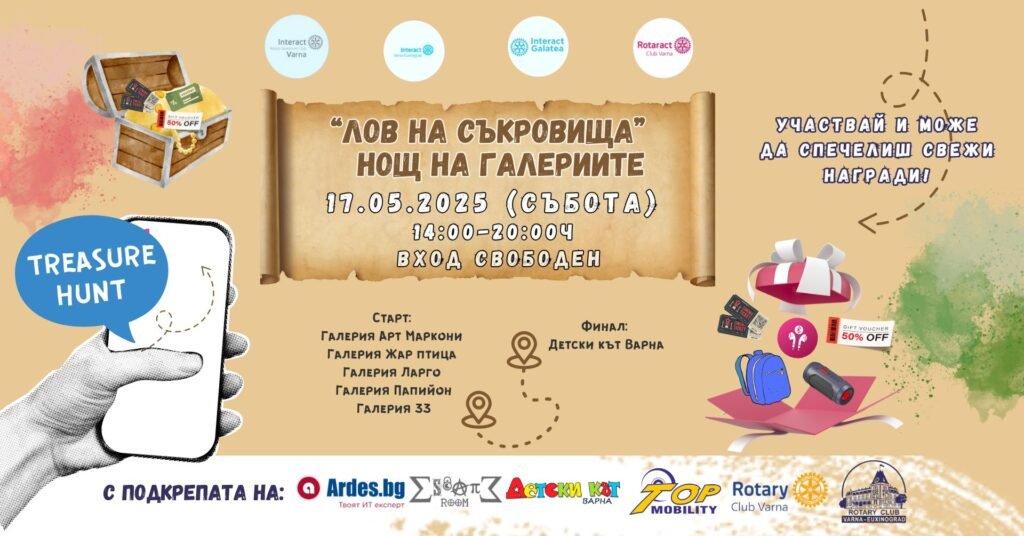Варна ще се превърне днес в сцена на едно от най-очакваните събития в културния календар – интерактивната игра „Лов на съкровища“, организирана като част от инициативата „Нощ на музеите и галериите“. Арт преживяването кани участниците да се включат в градско приключение, в което ще разгадават загадки, вдъхновени от изкуството. Събитието се организира от Интеракт клуб […]