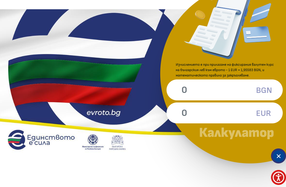 Онлайн калкулатор за превалутиране е вече активен на официалната интернет страница за въвеждане на еврото в България – еврото.бг/evroto.bg, след като официално беше обявен курсът от 1.95583 лева за едно евро, съобщиха от Националното сдружение на Общините в Република България. Калкулаторът е на видимо място на заглавната страница и е максимално опростен за употреба. Той […]