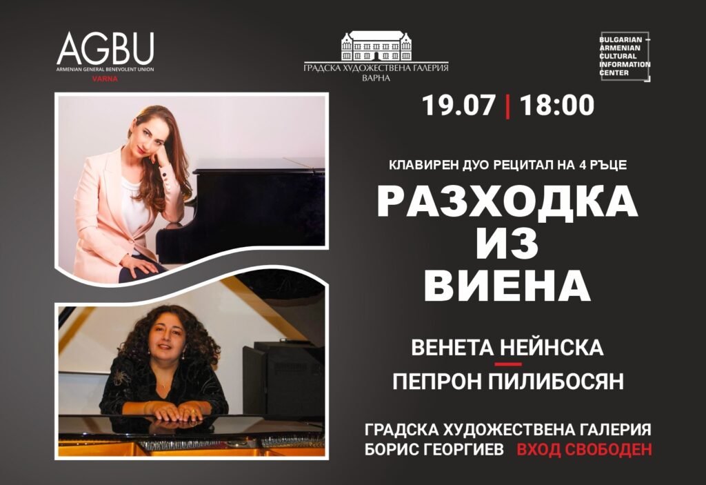 Днес от 18:00 ч. в Градската художествена галерия „Борис Георгиев“ ще се състои концертът „Разходка из Виена“ – клавирен дуо рецитал на четири ръце, посветен на музикалната традиция на виенската класика. Събитието е част от културната програма на Общоарменски благотворителен съюз „Парекордзаган“ – Варна. На сцената ще застанат две изявени пианистки с впечатляваща кариера – […]