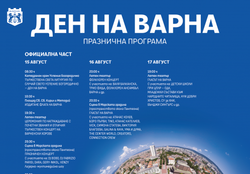 Вече 32 години Варна отбелязва своя празник на 15 август. Малцина обаче са тези, които си спомнят неговото начало. В далечната 1992 г. пред местната власт стоеше въпросът за обновяване на официалния празничен календар на Варна. Дотогава като ден на града се честваше 27 юли. На тази дата през 1878 г. руските войски, начело с […]