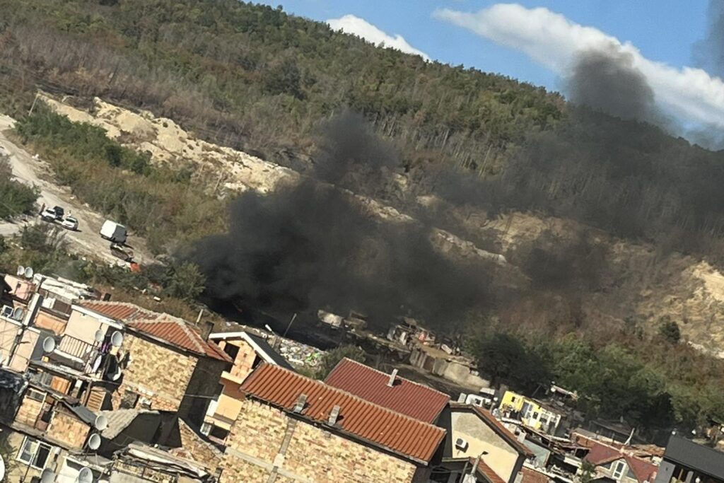 Горящо нерегламентирано сметище във „Владиславово“, няма опасност да се разрасне