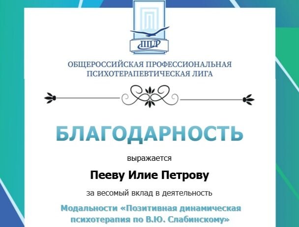 С ЛЮБОВ КЪМ ПСИХОТЕРАПИЯТА Капитан I ранг о.р. професор доктор на психологическите науки инженер Илия Петров Пеев Международен благодарствен адрес за капитан I ранг от запаса професор доктор на психологическите науки инженер Илия Петров Пеев Член на Международния програмен комитет на Общоруската Професионална психотерапевтическа лига (ОППЛ) https://oppl.ru Почетен професор, Заместник-председател на Научния съвет на АНО […]