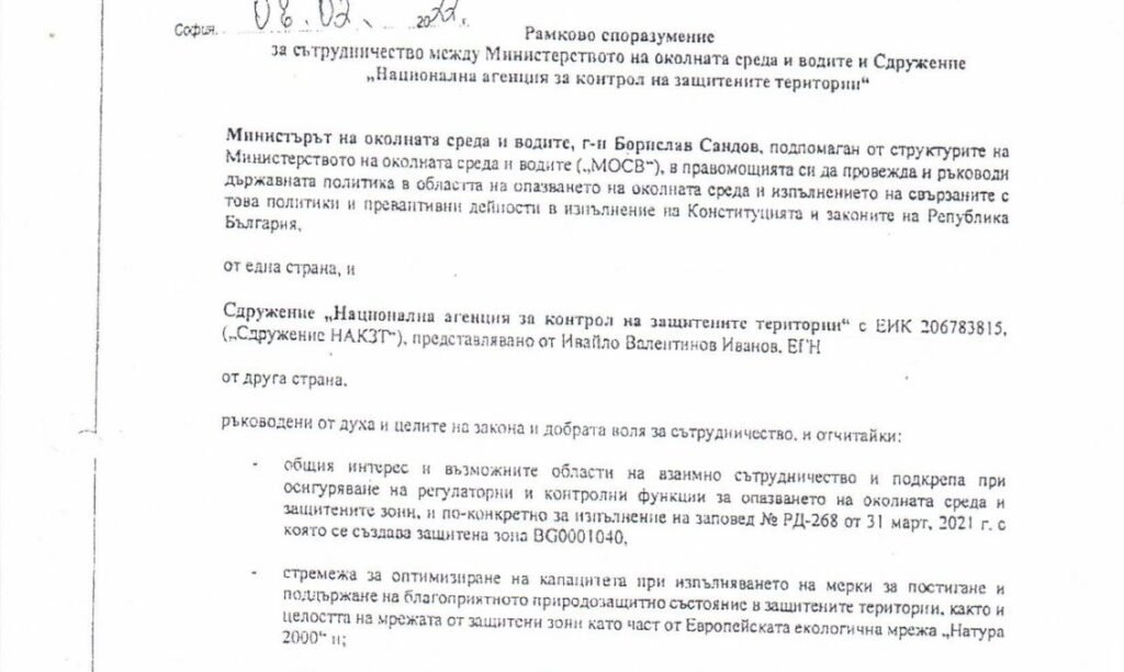 На 26 юни 2025 г. МОСВ е уведомило Сдружение „Национална агенция за контрол на защитените територии“ (Сдружение НАКЗТ) за едностранно прекратяване на Рамковото споразумение за сътрудничество. Споразумението е подписано на 08.02.2022 г. между Борислав Сандов в качеството му на министър на околната среда и водите и Сдружение НАКЗТ, представлявано от Ивайло Иванов. В него се […]