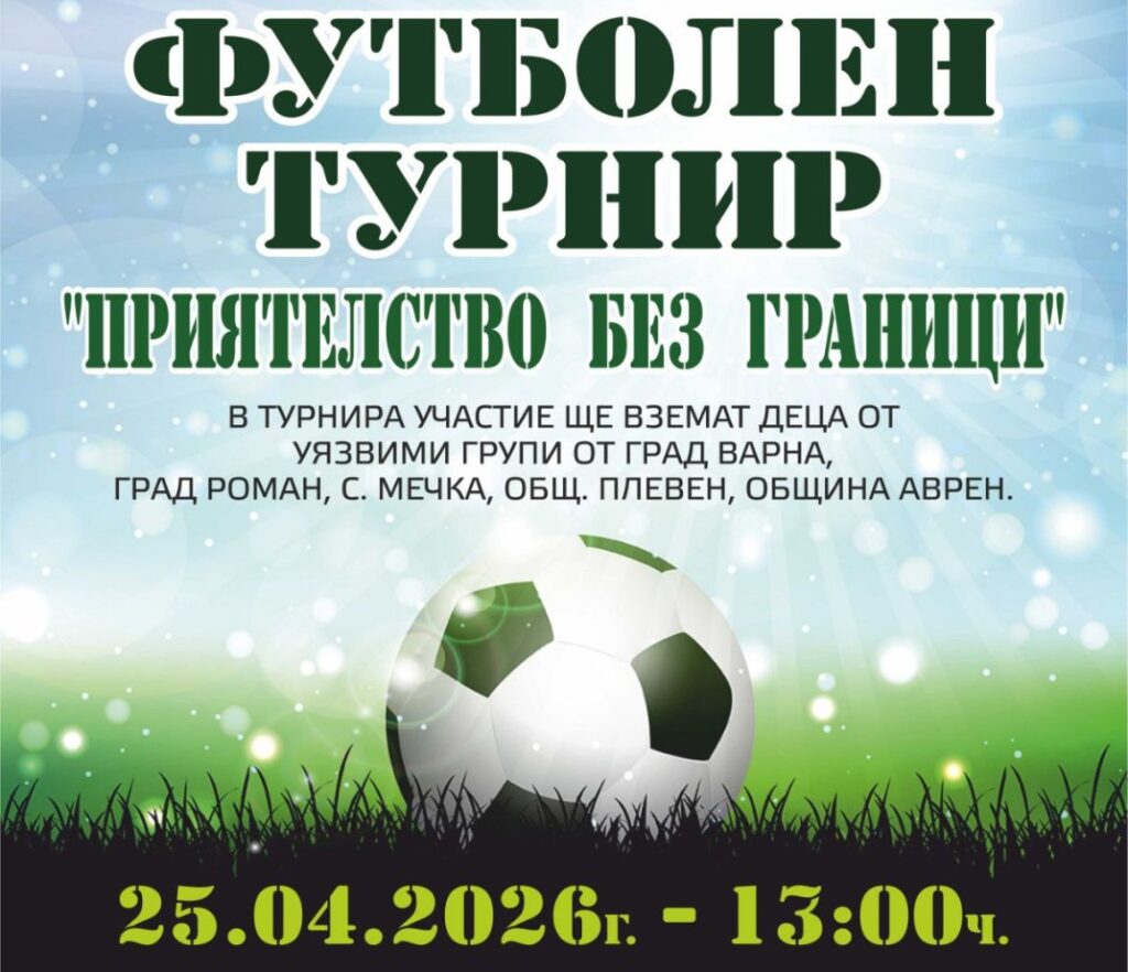 Варна ще бъде домакин на футболен турнир „Приятелство без граници”, който ще се проведе на 25 април от 13:00 часа на общинските футболни игрища в Аспарухов парк. Организатор на събитието е Центъра за стратегии по проблемите на малцинствата с подкрепата на Дирекция „Спорт” към Община Варна и район “Аспарухово” Варна. В надпреварата ще вземат участие […]