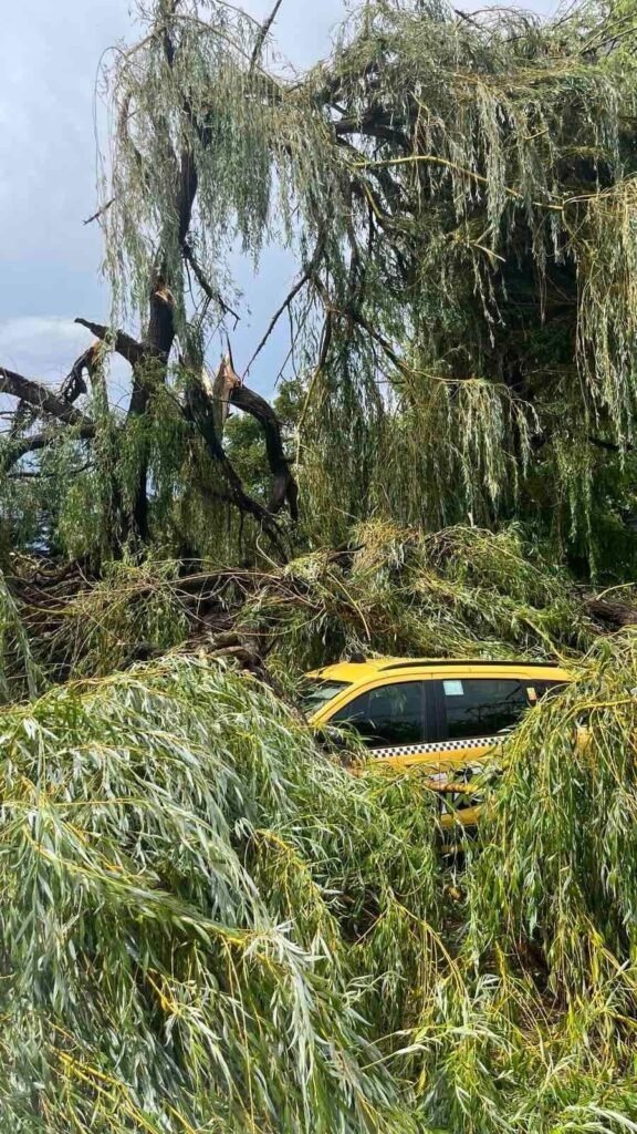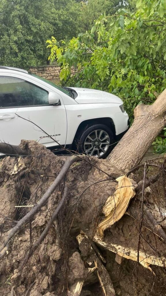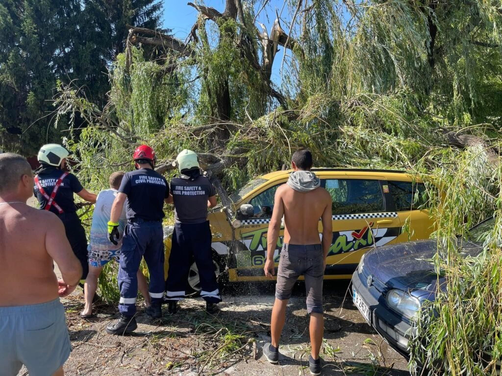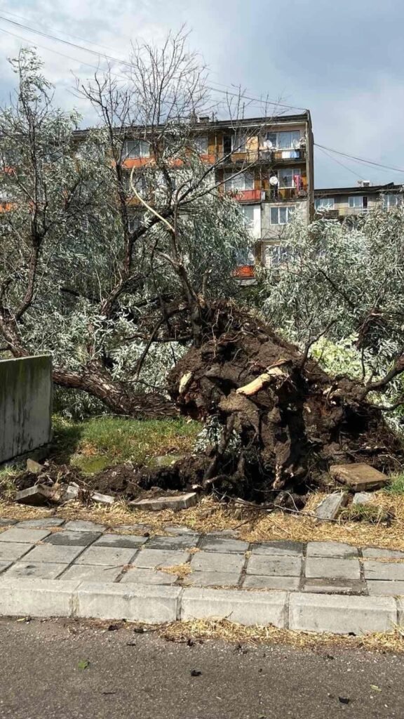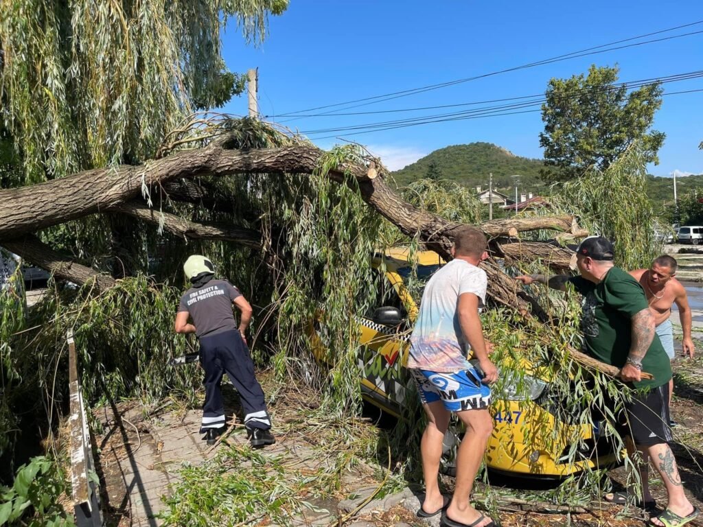 Близо 70 дървета бяха повалени от силния вятър, 2 автомобила бяха затиснати от паднало дърво, части от града са без ток. Най-много са пораженията в кв. Повеляново.