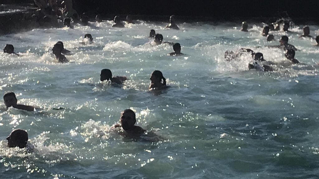 Той се оказа най-бързият плувец, който имаше късмета сред всички 81 кандидати да хване символа на вярата и здравето.