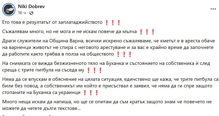 Коментар във връзка със случая публикува в мрежата и Ники Добрев. Медията ни споделя написаното без редакторска намеса:
