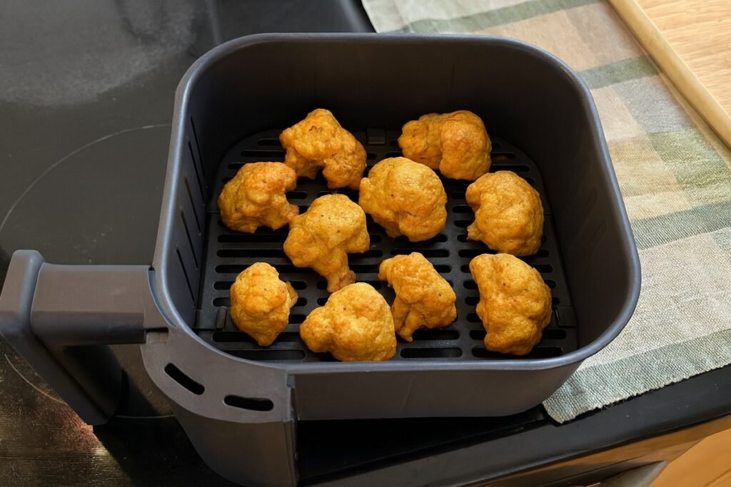 Винаги предварително загрявайте Airfryer-а на 200°C — така карфиолът става едновременно хрупкав и добре изпечен.