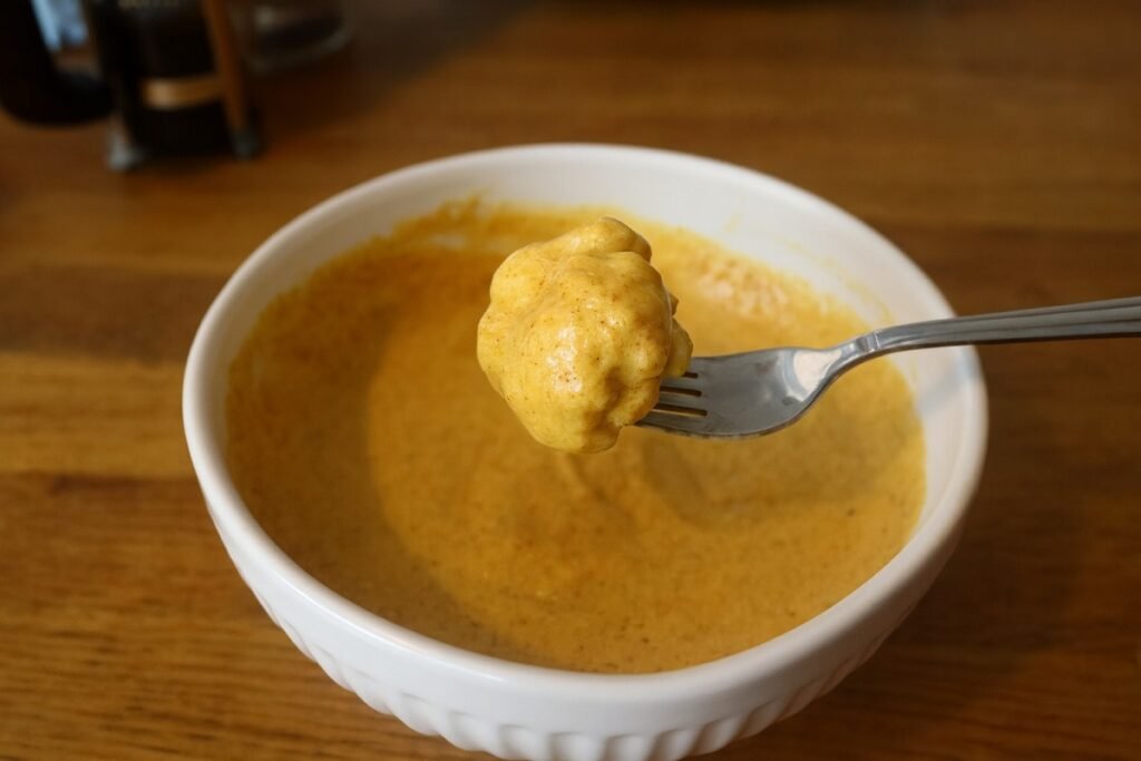 Оставете соса да престои 5–10 минути, за да се сгъсти. Така полепва значително по-добре по карфиола.