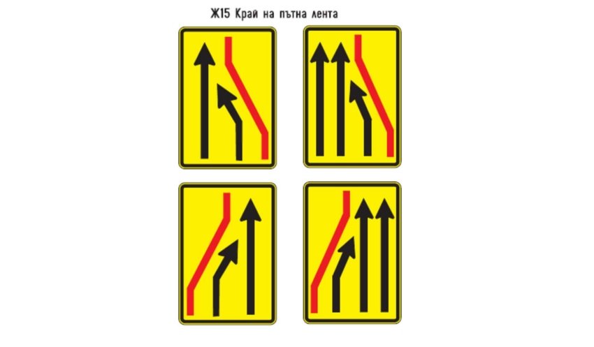 При стеснения в следствие от въведена временна организация на движението, непосредствено преди затворената лента за движение се поставя знак Ж15, сигнализиращ Край на пътнагпа лента.