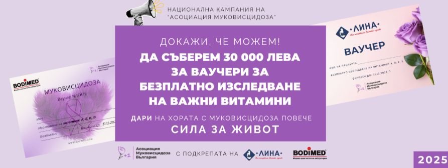 На 8 ноември „Асоциация Муковисцидоза“ стартира кампания „Сила за живот“ – инициатива, посветена на събирането на 30 000 лв. за осигуряване на безплатни изследвания на жизненоважните мастноразтворими витамини A, D, E и K при деца и възрастни, живеещи с муковисцидоза в България.