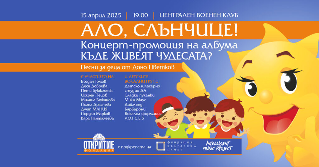 На 15 април в концертната зала на Централния военен клуб в София ще се състои премиерният концерт на новия албум с детски песнички на композитора Доно Цветков „Къде живеят чудесата?“ – музикален проект, който не само ще радва малките слушатели, но и изпълнява важна културна мисия.