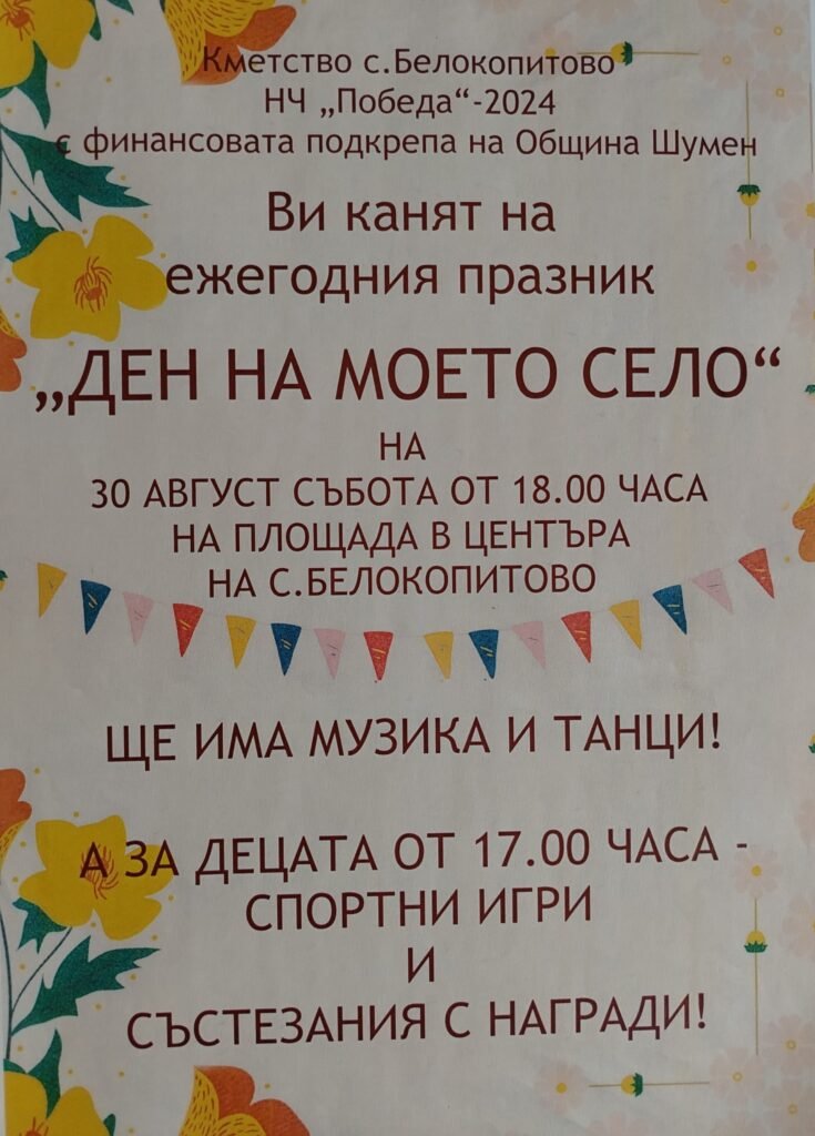 И двата празника обещават да превърнат 30 август в ден на общност, традиция и радост, събирайки жителите и гостите на Белокопитово в единство около българските обичаи.