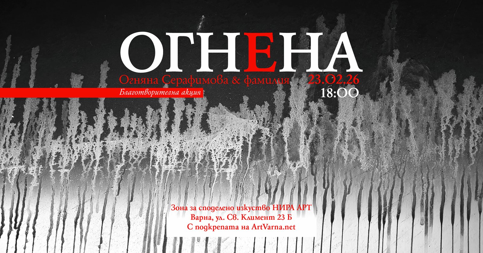 По този повод днес се открива благотворителната изложба “Огнена” в Зона за споделено изкуство Нира Арт Варна