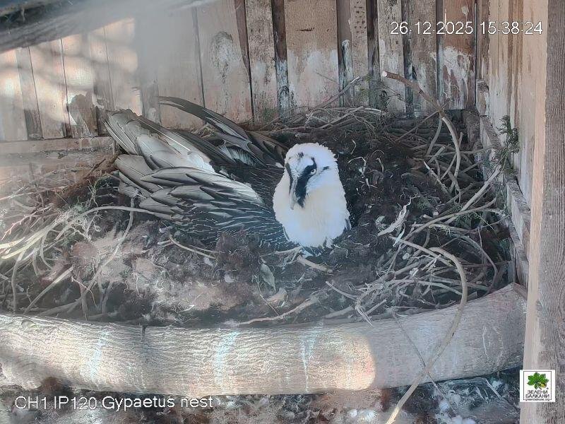 В първия ден от Коледа двойката брадати лешояди в Спасителния център на Зелени Балкани снесоха първото си яйце и с това започна единадесетият им размножителен сезон.