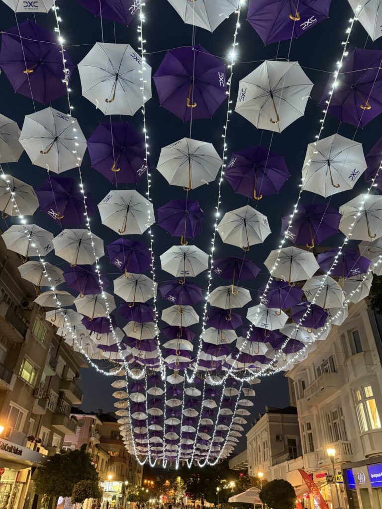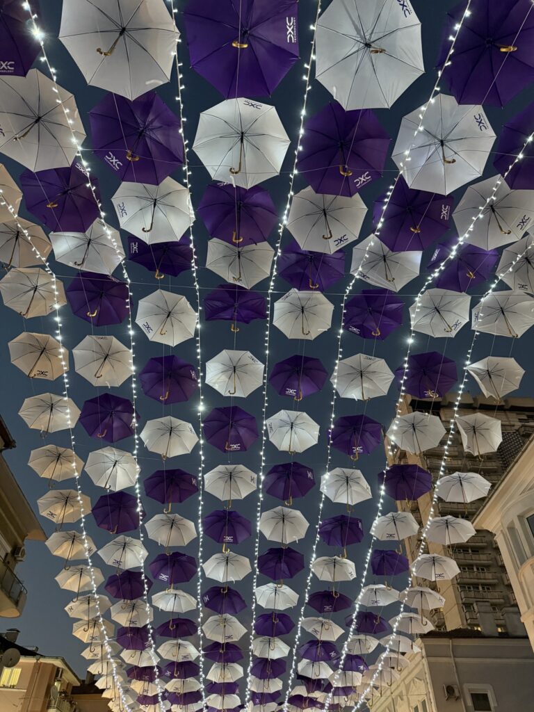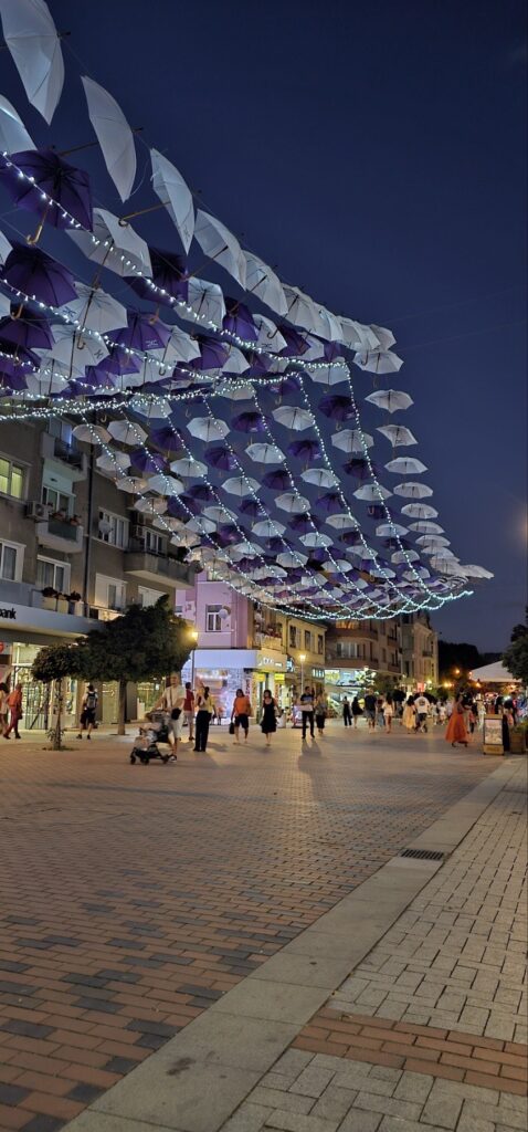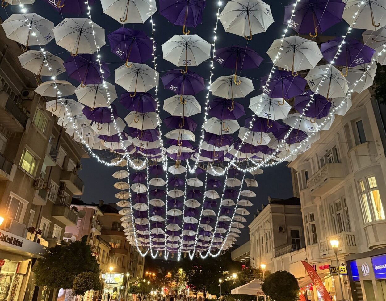 От снощи една от най-цветните атракции в центъра на Варна – арт инсталацията с висящи чадъри на бул. „Княз Борис I“ – грейна в нова светлина. Стотици малки лампички бяха монтирани по конструкцията, превръщайки мястото в още по-впечатляваща гледка за разходка в топлите летни вечери.