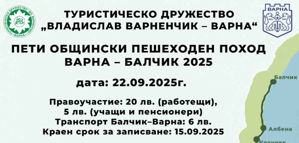 За пета поредна година по повод Деня на независимостта на България – 22 септември, варненското туристическо дружество „Владислав Варненчик” заедно с Дирекция „Спорт“ към Община Варна организират Черноморски поход Варна – Балчик.