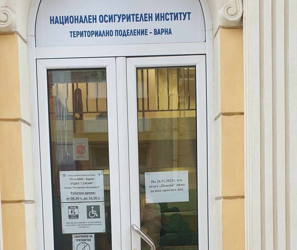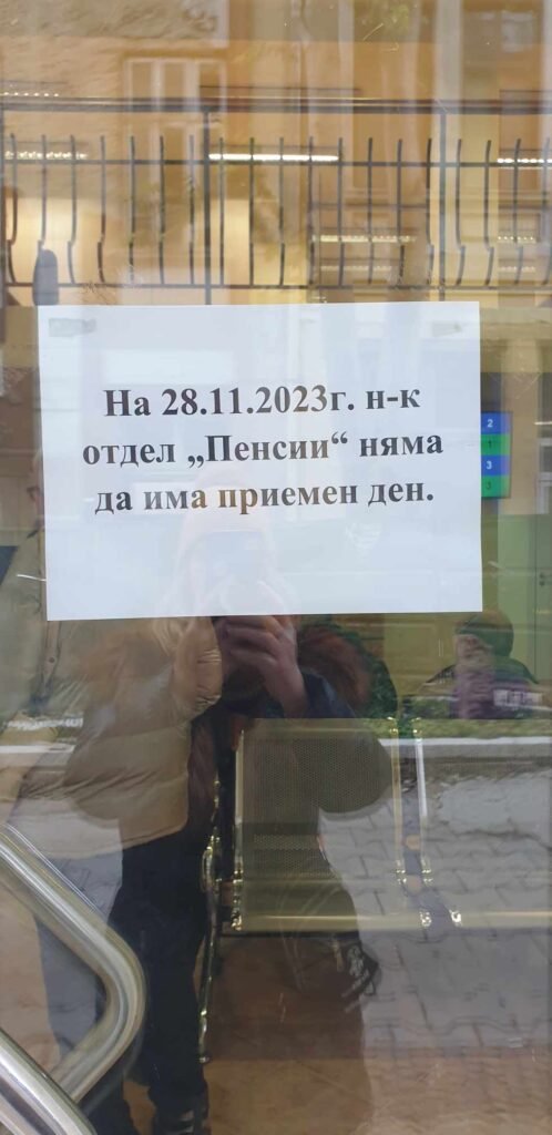 кротко табела с надпис : Днес 28.11.2023 г шефът на пенсионен отдел Варна няма да има