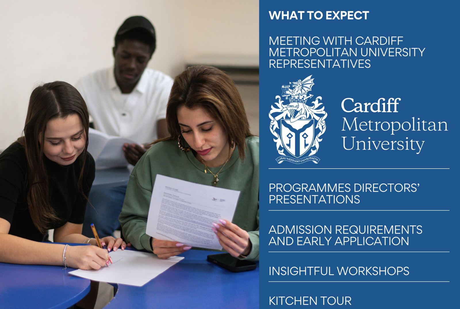 Това издание ще бъде специално, защото за първи път на живо ще участват представители на Cardiff Metropolitan University, които ще се срещнат с кандидат-студентите. Те ще разкажат за партньорството между двете институции, за изискванията и критериите, които ВУМ покрива, за да отговаря на стандартите на британската образователна система, както и за разликите между висшето образование в България и Великобритания.