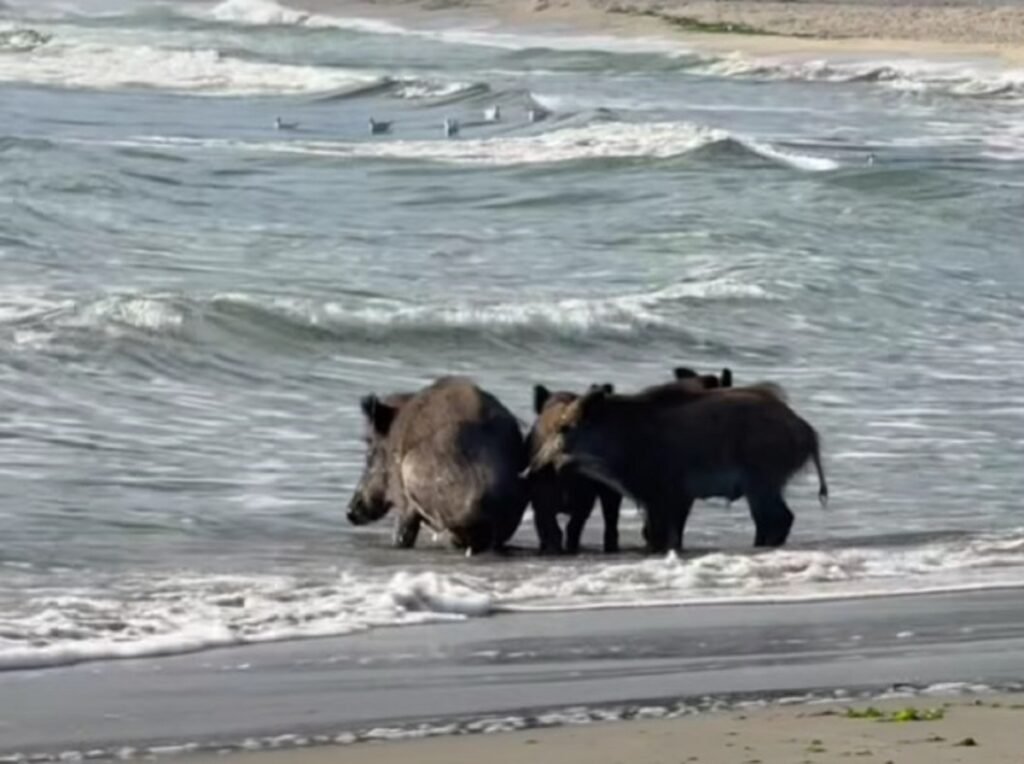 Необичайни „курортисти“ сложиха край на плажния сезон във варненския квартал Аспарухово – диви прасета решиха да се разхладят в морето и бяха заснети от местни жители. Кадрите, публикувани в социалните мрежи, показват как животните се къпят и разхождат край плажа, без да се притесняват особено от човешкото присъствие. Животните бяха засечени и вчера, но в района на игрищата в “Аспаруховия парк”.