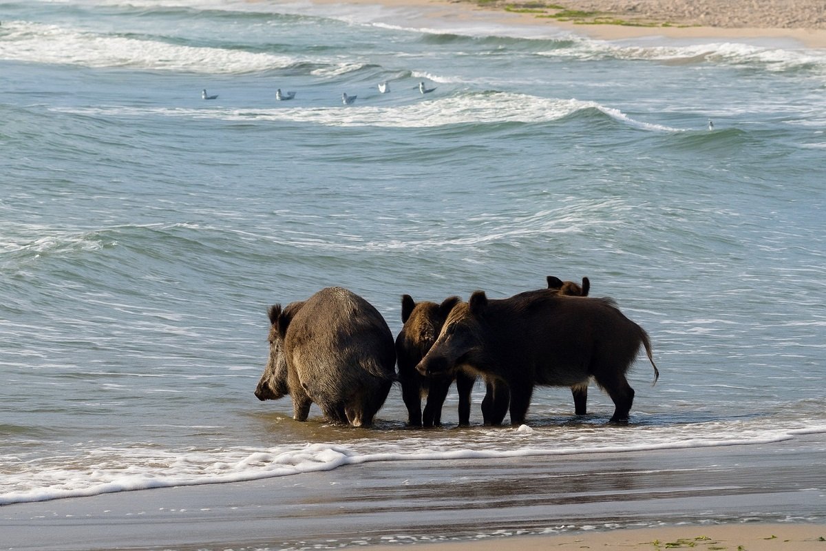 Диви прасета обявиха „закриването“ на плажния сезон в Аспарухово (СНИМКИ)