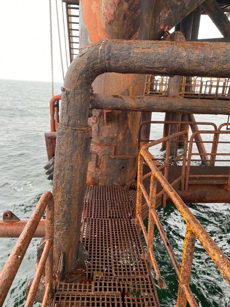 Операторът OMV Petrom има лоша история с поддръжката на газова инфраструктура в Черно море – дълбоко корозиралата Платформа 7 в румънски води. © „Грийнпийс“ – РумънияNext