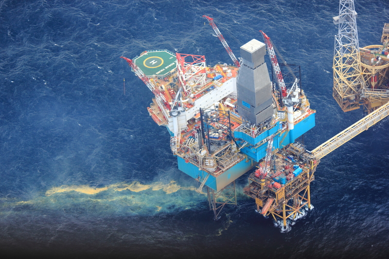 Случаят с теча в находището „Елгин“ в Северно море през 2012 г., показва, че екологичните катастрофи са реален риск дори и с най-напредналите технологии и в местата с най-сериозни механизми за контрол и реакция. © Greenpeace / TIBNext