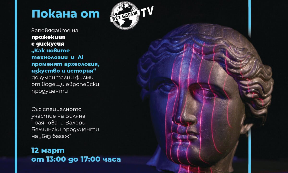 Първата част от програмата ще се проведе между 13:00 и 17:00 ч. в отдел „Изкуство“ на библиотеката (ул. „Генерал Паренсов“ № 3). Гостите ще могат да посетят специална  прожекция с дискусия на тема „Как новите технологии и изкуственият интелект  променят археологията, изкуството и историята“. В рамките на събитието ще бъдат  представени документални филми, които показват как съвременните технологии  помагат за новото „прочитане“ на миналото.