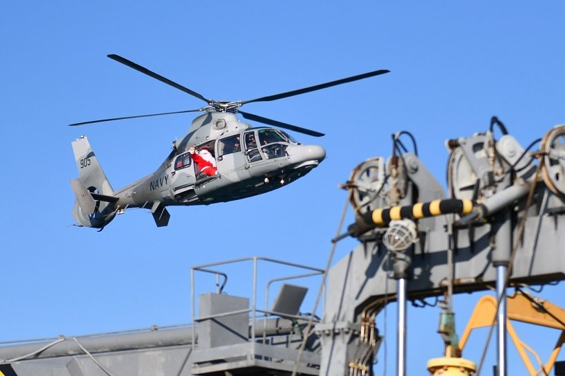 Днес с „редовен полет” от далечната Лапландия до Военноморска база – Варна пристигнаха Дядо Коледа и Снежанка, съобщиха от ВМС.