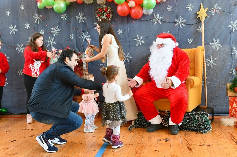 Около празничната елха и камина децата поздравяваха и прегръщаха Дядо Коледа и Снежанка. Добрият старец щедро раздаваше подготвените от работливите джуджета подаръци.