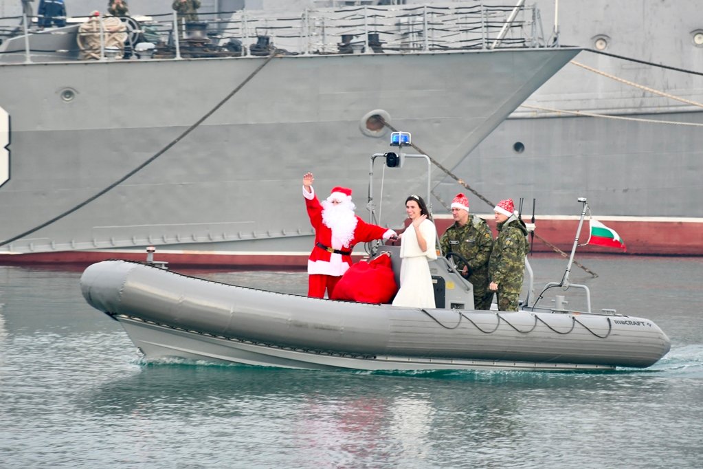 Добрият старец помаха на дошлите да го посрещнат повече от 120 деца на военнослужещи и цивилни служители от военните формирования във град Варна. Лодката застана на военния пирс и дългоочакваните гости бяха обградени от нетърпеливите малчугани. След това заедно с техните родители преминаха дългия път до празнично украсената зала.