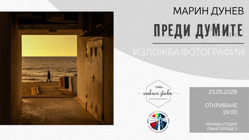 Фотографска изложба “Преди думите” на Марин Дунев ще бъде открита във Варна на 23 май 2026 г. в “Мукава Студио” на ул. “Панагюрище” 3.
