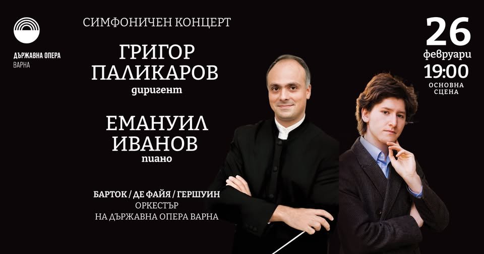Пианистът със световна кариера Емануил Иванов ще е солист на Симфоничния концерт на 26 февруари във Варненската опера. Пред оркестъра ще застане един от най-изявените български диригенти, маестро Григор Паликаров, а в концертната програма са включени творби на Бела Барток, Мануел де Файя и Джордж Гершуин.
