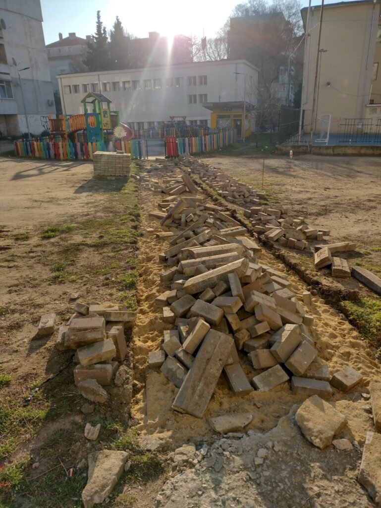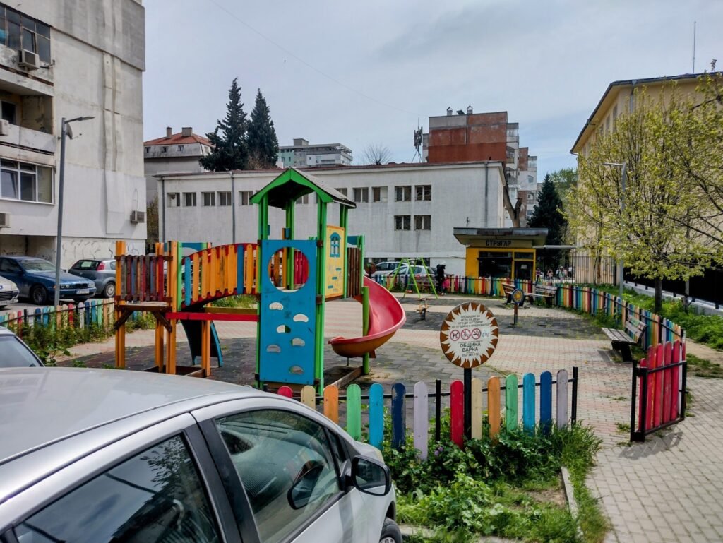 Като резултат в случая имаме детска площадка, към която са насочени ауспусите на десетки автомобили, без дървета, без зеленина с пейки за възрастните и с предпоставки за повишени температури на пространството през топлите месеци.