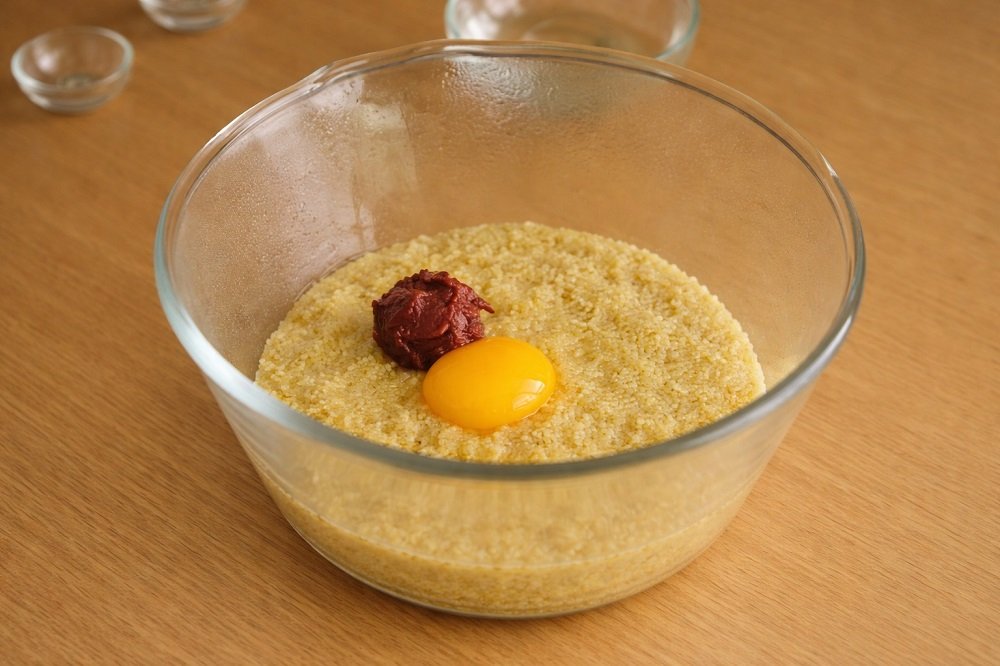 В безглутенов вариант може да се използва царевичен грис (полента) или оризово брашно, но тогава е препоръчително да се добави малко повече яйце или брашно за стабилност.