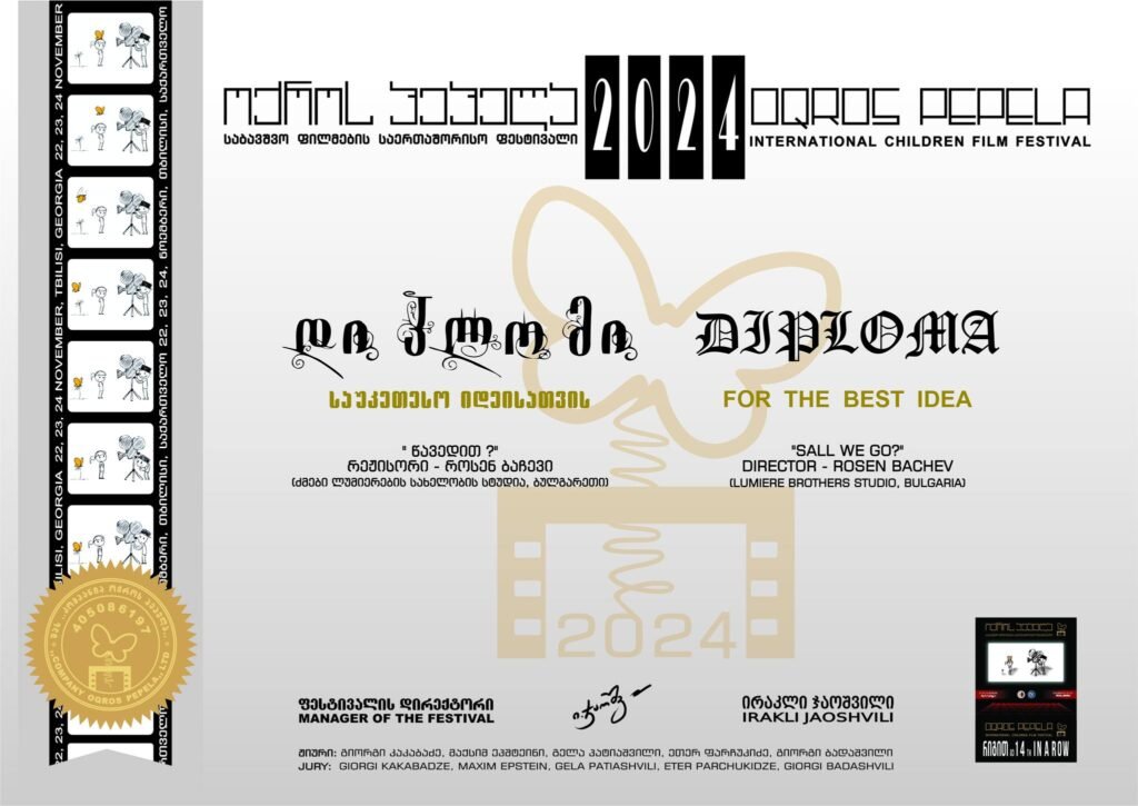 „Д-р Росица Младенова ме информира, че при провеждането на новото издание на „Арлекин“ във Варна (фестивалът ще се проведе в периода 20-23 юни, 2025 г.) в присъствието на официални гости от администрацията на Община Варна, Росен ще получи своя приз от Грузия. Надявам се последното международно отличие да стимулира Росен в работата му и му пожелавам успех като кандидат студент, защото му предстоят отговорни и трудни изпитни дни в НАТФИЗ през юли“- споделя д-р Елица Матеева, худ. ръководител на киношкола „Братя Люмиер“.
