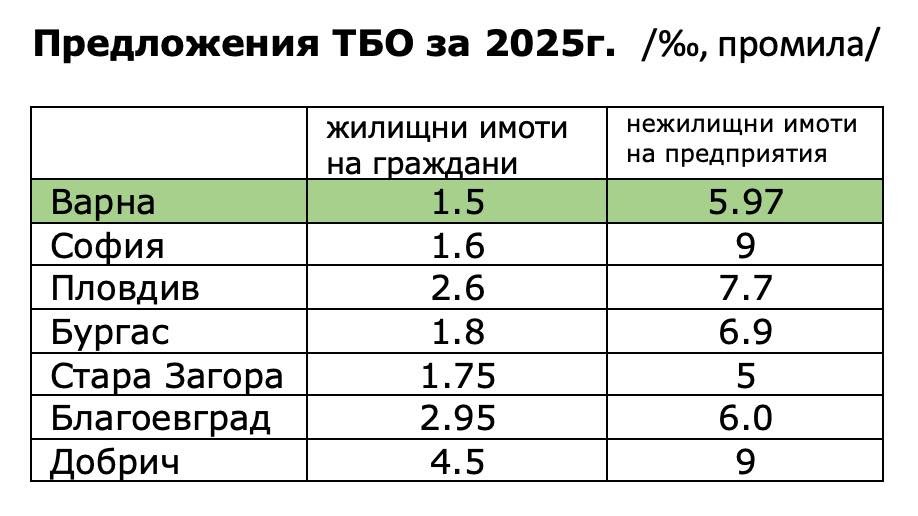 Той припомни още, че се предлага такса битови отпадъци за жилищни имоти на граждани да стане 1,5 промила върху данъчната оценка, при сегашните 0,98 промила. За нежилищни имоти на предприятия се предлага ставката да бъде 5,97 промила. За сравнение в Пловдив се предлага същата такса за граждани да бъде 2,6 промила, а за фирми – 7,7 промила. Като илюстративен пример Симеонов посочи, че според анализите, за един средноголям апартамент в морския град, увеличението е с около 50 лева на година.