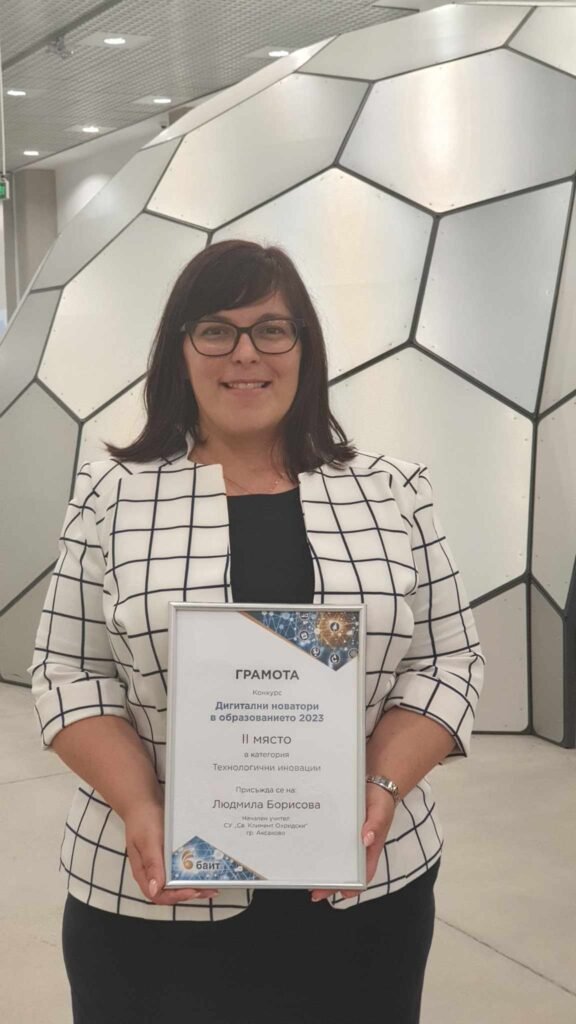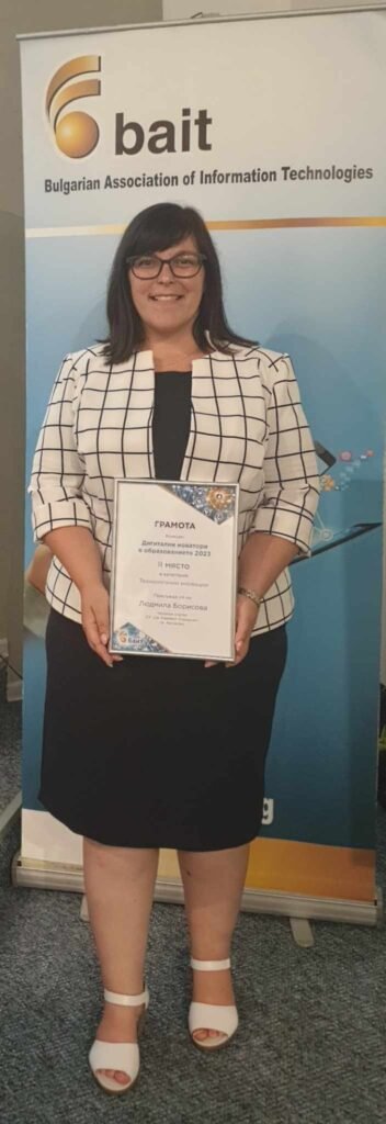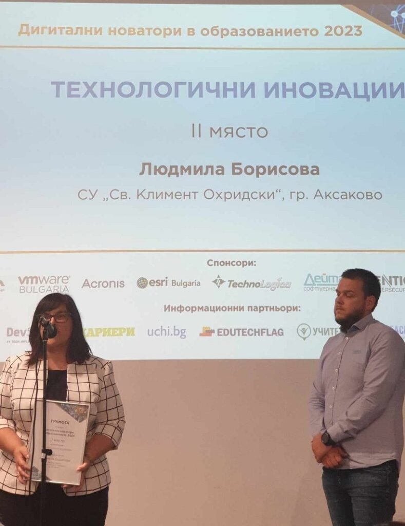 14 учители от цялата страна бяха отличени в конкурса на БАИТ „Дигитални новатори в образованието“ за 2023 г. и получиха своите грамоти на официална церемония в ТехноМеджикЛенд. Сред отличените учители, на второ място е и изявен учител от Аксаково, а именно г-жа Людмила Борисова, старши учител в СУ “Св. Климент Охридски” в град Аксаково. Тя получи грамота в категория “Технологични иновации”.