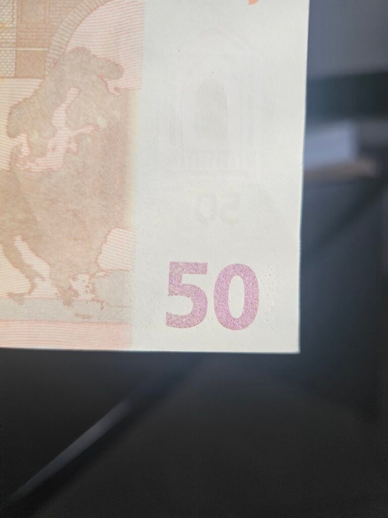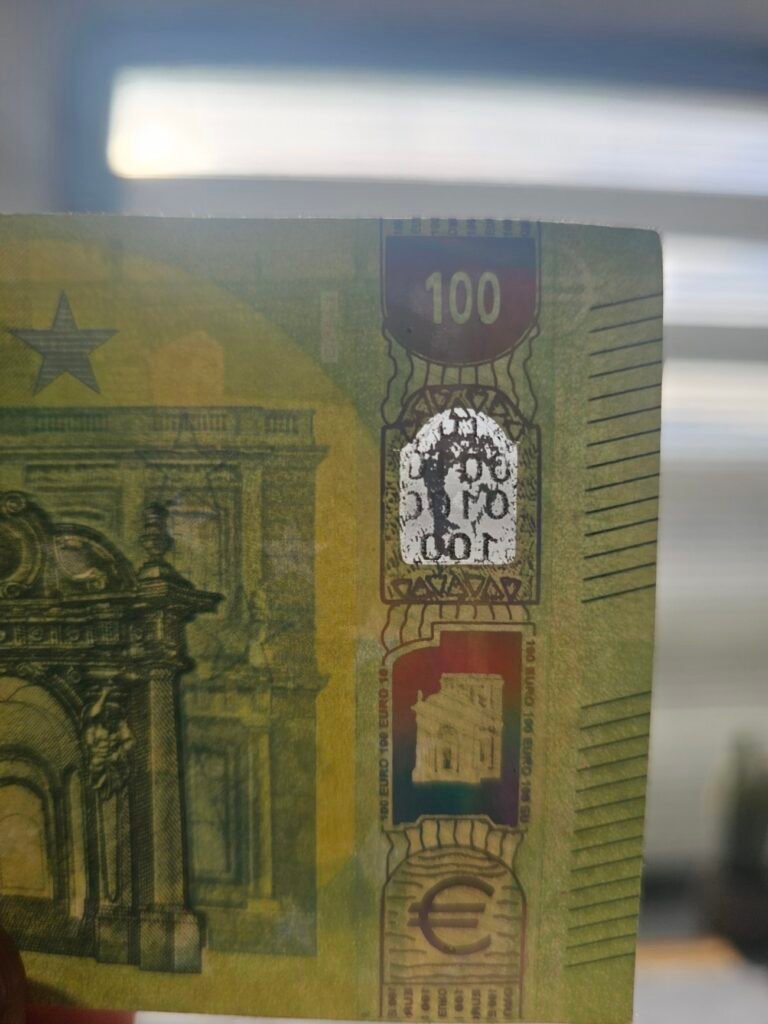 ✅ Размазани и неясни водни знаци и защитни нишки, както и видимо напечатани такива от някоя от двете страни на банкнотата. Истинските са вградени в хартията не напечатани отгоре.