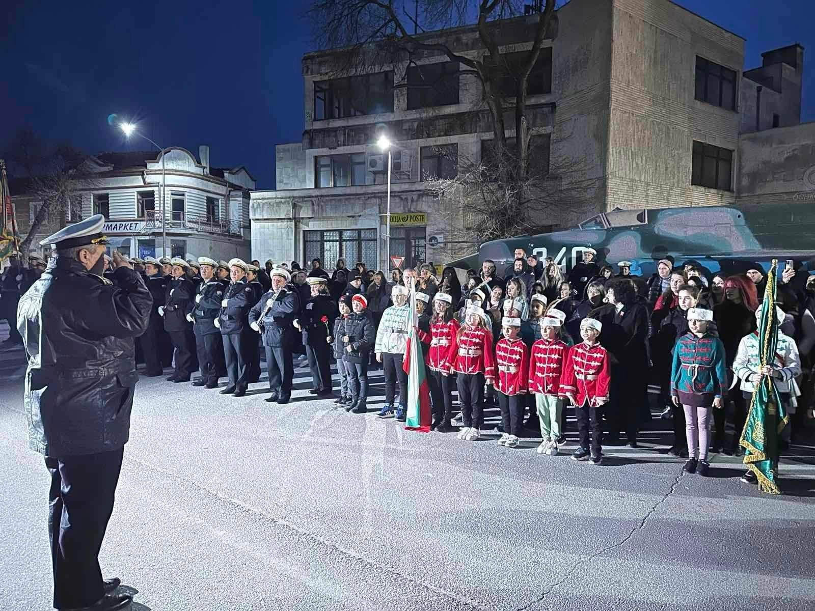 С тържествена проверка-заря с участието на представителна част на Военноморски сили – Варна и представителни блокове на общинските училища, Община Дългопол отбеляза 146 години от Освобождението на България.