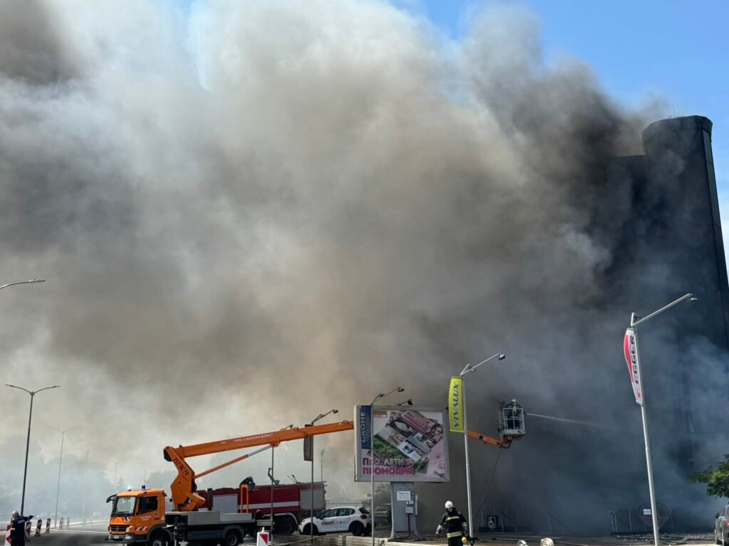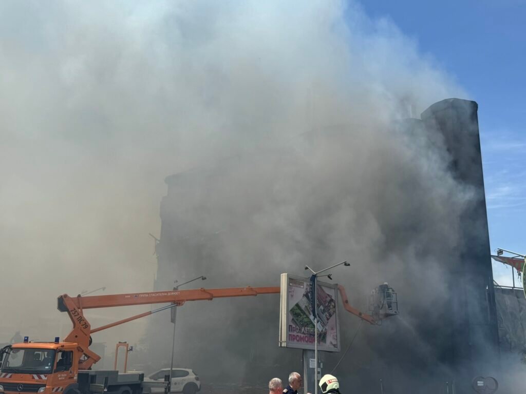 Пожарът е обхванал и други търговски обекти, споделиха от полицията в града.
