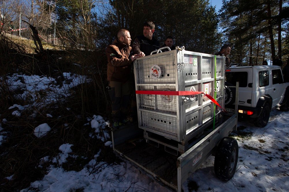 За първи път в историята на България диви животни пристигат със самолет от друг континент, за да намерят своя дом в защитеното убежище на ЧЕТИРИ ЛАПИ – ПАРК ЗА МЕЧКИ Белица.