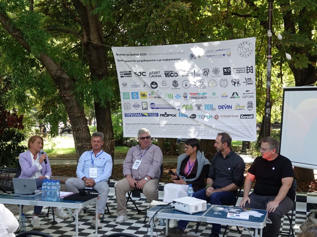 Инж. Димитров и заместник-кметът на Варна инж. Пламен Китипов участваха в панела, посветен на ролята на институциите в развитието на градската среда, начините на взаимодействие с гражданското общество, както и върху актуалните предизвикателства и приоритети за Варна.