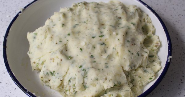 - Подгответе картофите: Обелете ги, нарежете на едри парчета и ги сварете в подсолена вода до пълно омекване. След това ги отцедете и намачкайте до гладко пюре.