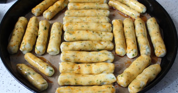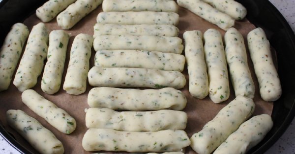 - Оформете пръчици: От сместа откъсвайте топчета, малко по-големи от орех, и ги оформете с ръце като тънки цилиндрични пръчици.