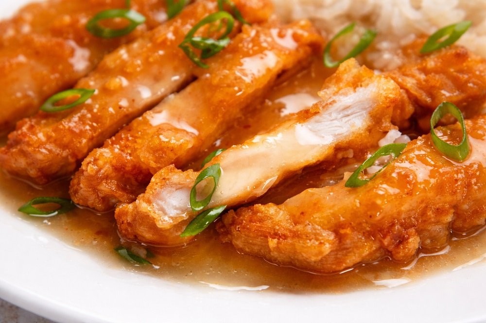 Класика от „старото училище“ – цели, панирани пилешки филета, нарязани на ленти и щедро залети с гъст, балансирано сладко-кисел лимонов сос. Изключително ароматно, с ярък лимонов вкус и панировка, която остава хрупкава по-дълго от обичайното.