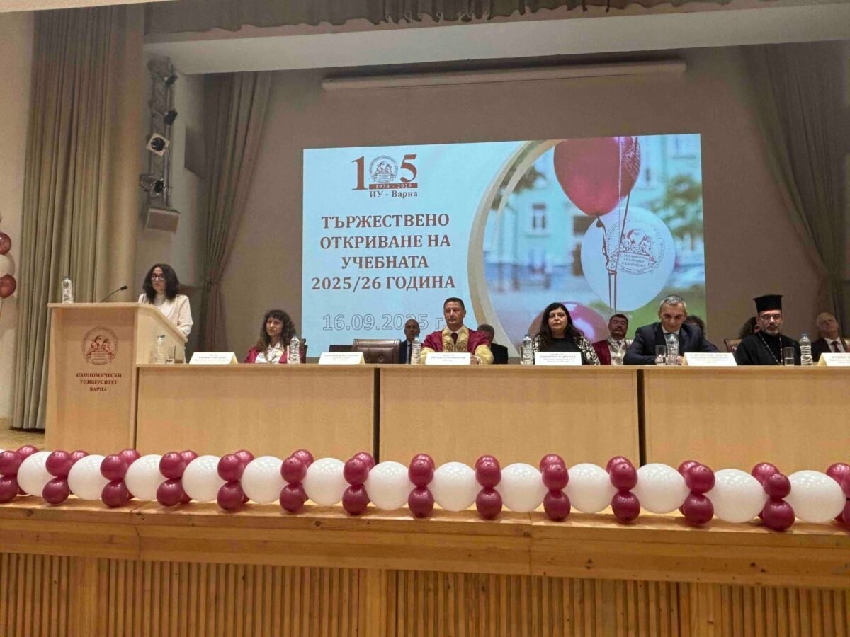 С тържествена церемония в зала „Аула“ бе дадено началото на новата академична 2025/2026 година в Икономически университет – Варна. На празничното събитие присъстваха заместник-кметовете Снежана Апостолова и Илия Коев, областният управител проф. Андрияна Андреева, председателят на Комисията по туризъм към Народното събрание Десислав Пасков, ръководството на висшето учебно заведение, представители на Варненска и Великопреславска света митрополия, районните кметства, множество студенти от различни поколения, родители, гости.