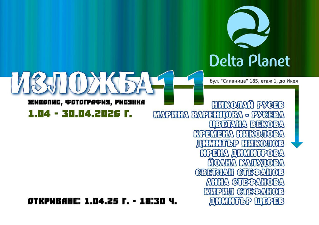 Изложба – живопис, фотография, рисунка, ще бъде открита днес във Варна. Вернисажът ще бъде даден от 18:30 часа в Делта Планет мол – ниво 1. Сред авторите, на чийто произведения ще се насладят варненци, са носителите на Награда „Варна“ – Николай Русев и Марина Варенцова – Русева.