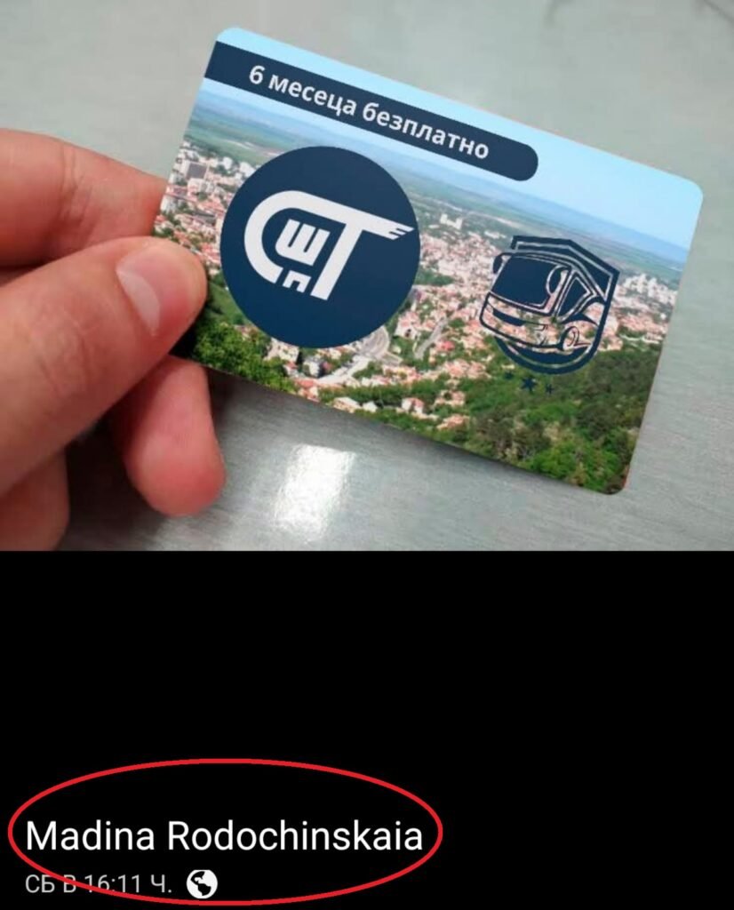 В публикациите са показани фотоси с кмета на Шумен и заместник-кмета, на фона на сини автобуси, но това са автобусите в гр. Русе от работна среща на 22 март 2024 г. на кметовете от Североизтока. Тези сини автобуси от снимкаите във ФАЛШИВАТА СТРАНИЦА нямат нищо общо с автобусите на градския транспорт в Шумен. В страницата са поместени и снимки на автобуси с шуменски регистрационни табели, за да се аргументира визуално заблудата. Фалшиви профили с женски имена в коментарите уверяват, че картата „е полезна“, като показват снимки на превозния документ, който реално не съществува и снимките се използват за въвеждане в измама на потребителите.