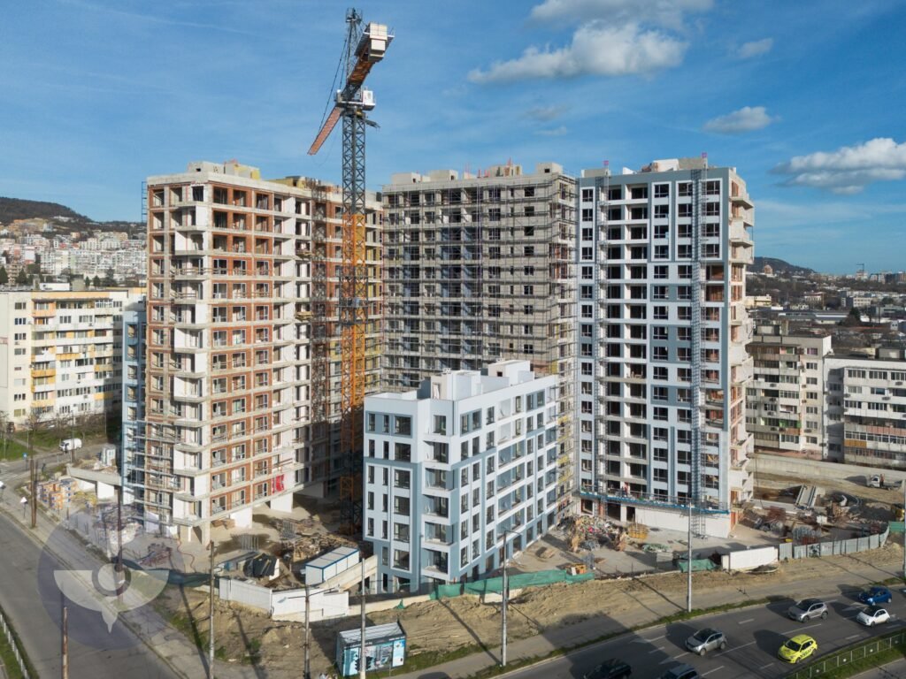 Кадри от птичи поглед на “Морско око” – Информационен портал за архитектура, градска среда и събития във Варна, разкриват мащаба на застрояване на огромния комплекс, който се строи на мястото на някогашния “Дом Младост“.